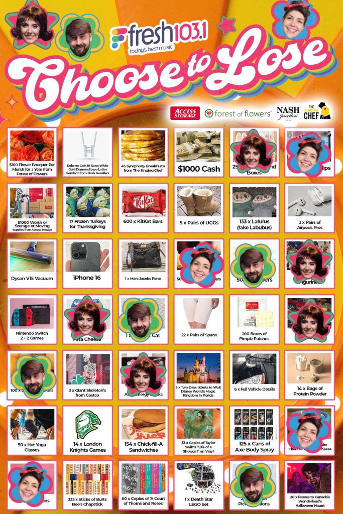 - When you hear the cue, “CHOOSE” text us at (519)-643-1031, then you’re the chooser and not the loser – you’ll simply be asked what item you don’t want on the board and its GONE.