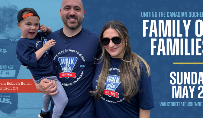 Join us on Sunday, May 24, 2026 as we Walk to Defeat Duchenne. The Walk to Defeat Duchenne unites families, friends, and supporters from coast to coast to coast! It’s Canada’s biggest fundraiser for Duchenne muscular dystrophy research, advocacy, education, and support. Every dollar raised helps ensure people can access the care, treatments, and support […]